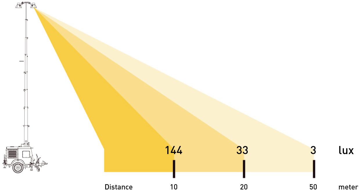 Lysmasterne leveres med kraftige LED-lamper, der giver op til 196.000 lumen og dækker områder fra 1.200 til 5.000 m² – perfekt til både præcisionsarbejde og generel byggepladsbelysning.