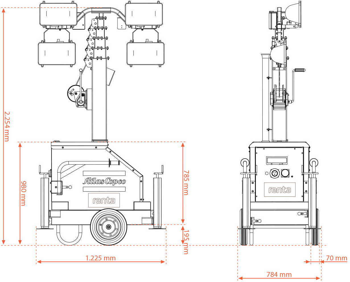 Lystårnene er udstyret med kraftige LED-lygter, justerbare master og generator, hvilket betyder, at du er helt uafhængig af ekstern strømforsyning. De kan opstilles på få minutter og dækker store arealer med ensartet belysning – hvilket øger både sikkerhed og effektivitet for dig og dit mandskab.