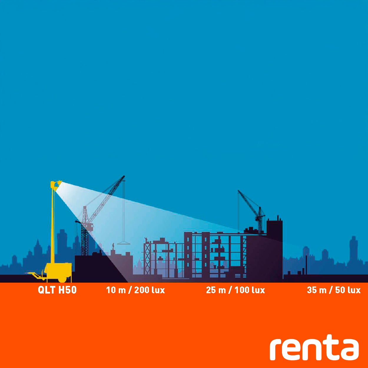 Lej dit trailermonterede lystårn hos Renta, og få fleksibel, professionel belysning leveret direkte til dit projekt.