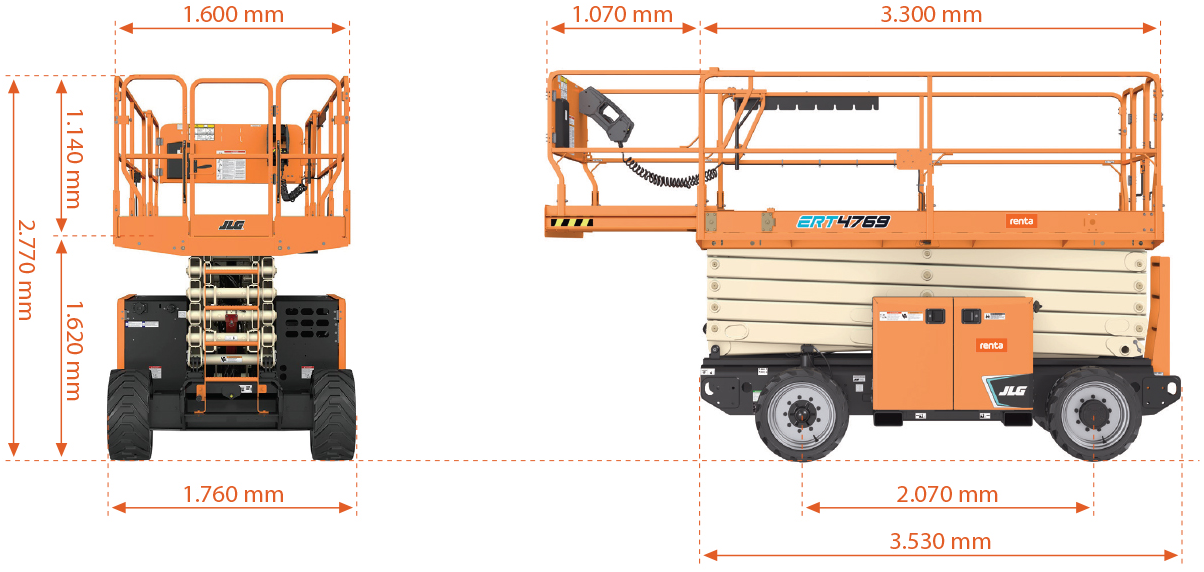 Samtidig får du alle de nødvendige sikkerhedsfunktioner – f.eks. selvlukkende låger, nødstop, hældningssensor og faldsikring. Du får altså både arbejdshøjde og sikkerhed i topklasse.