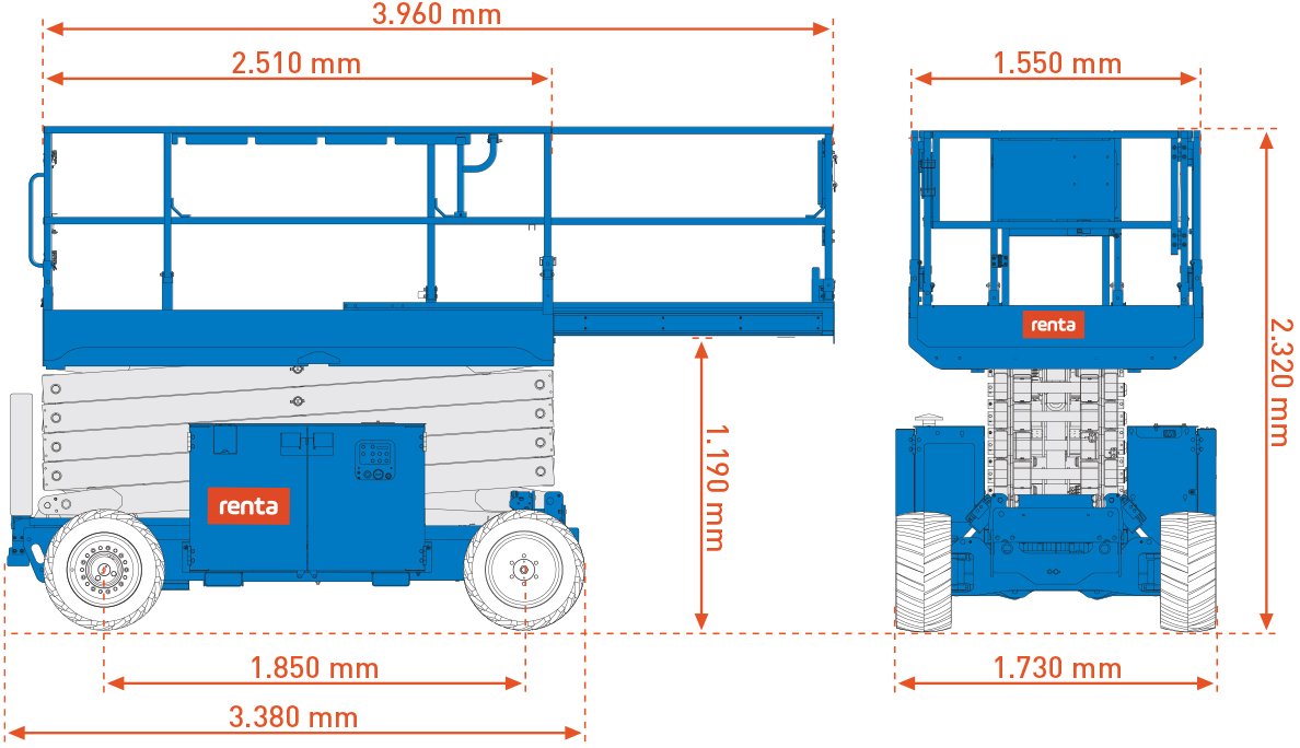 En saxlift med støtteben er den rette løsning, når du skal arbejde sikkert i højden, selvom underlaget ikke er helt plant. Ved udlejning af saxlift med støtteben hos Renta får du en robust og driftssikker lift, der automatisk nivellerer sig via støttebenene og skaber et stabilt arbejdsfundament. Det gør den ideel til montage, facadearbejde, installationer og serviceopgaver på byggepladser, hvor terrænet skifter, og almindelige saxlifte kommer til kort.