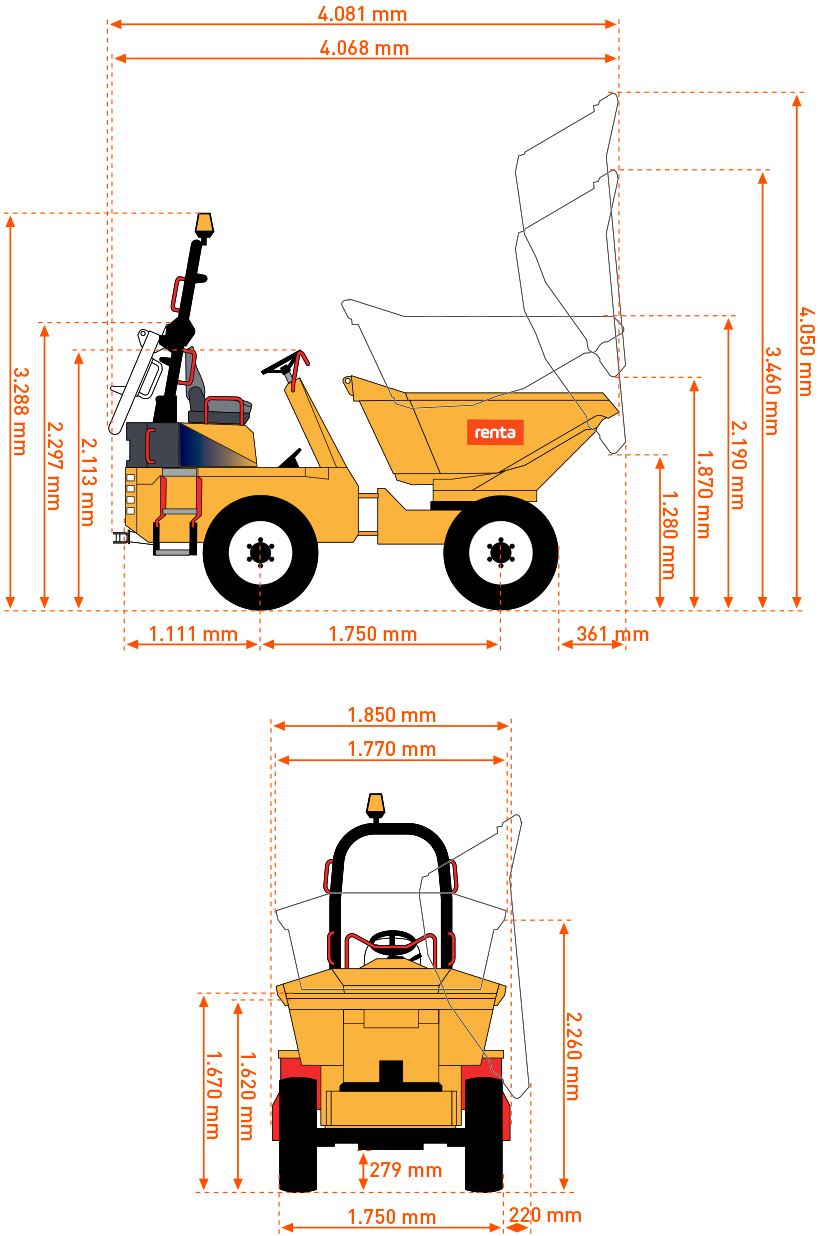 - Diesel dumper – 4WD – 3,0 t