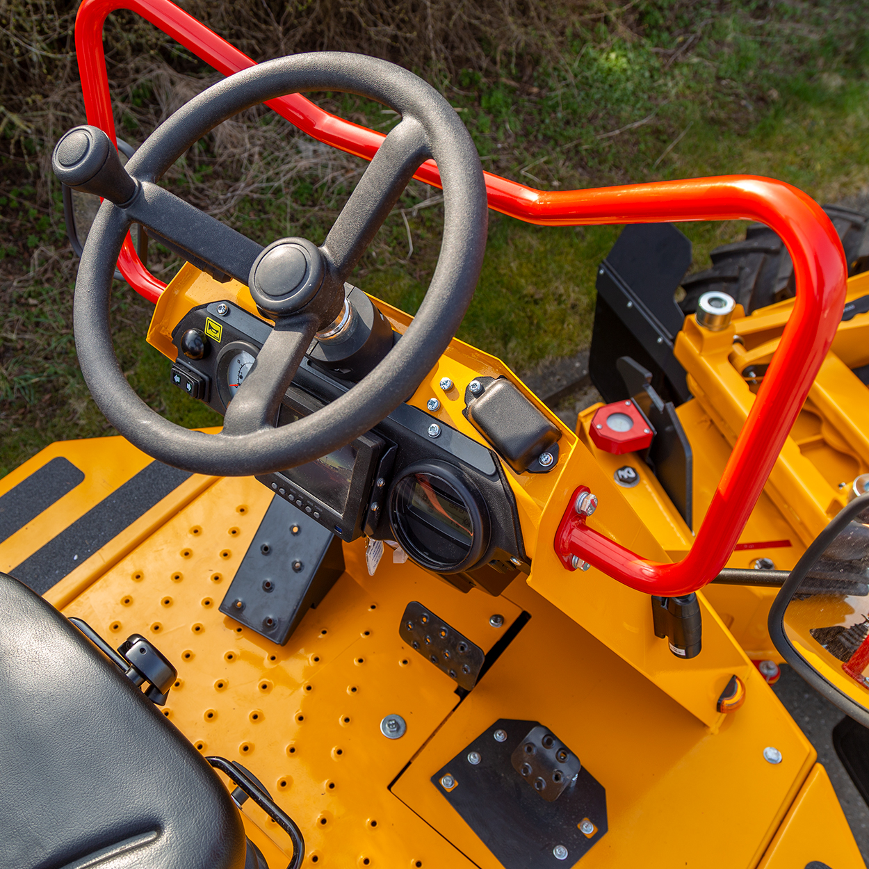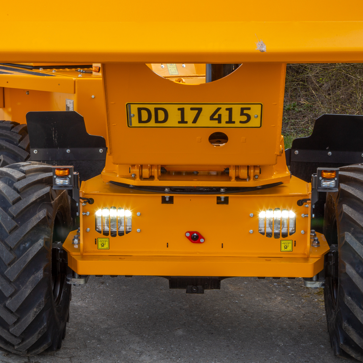 Dumperen er udstyret med både højt tip og sidetip, hvilket giver fuld kontrol over aflæsningen – uanset om materialet skal i container, deponeres i bunker eller tippes langs en rende. Aflæssehøjden på 1.670 mm gør den ideel til opgaver, hvor præcision og rækkevidde er afgørende.