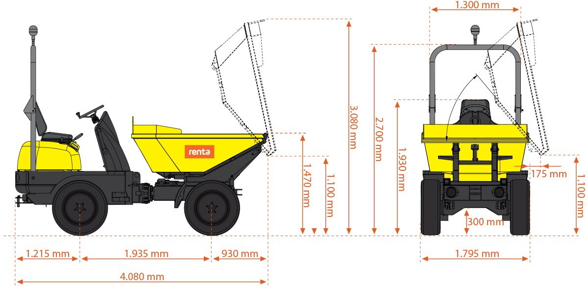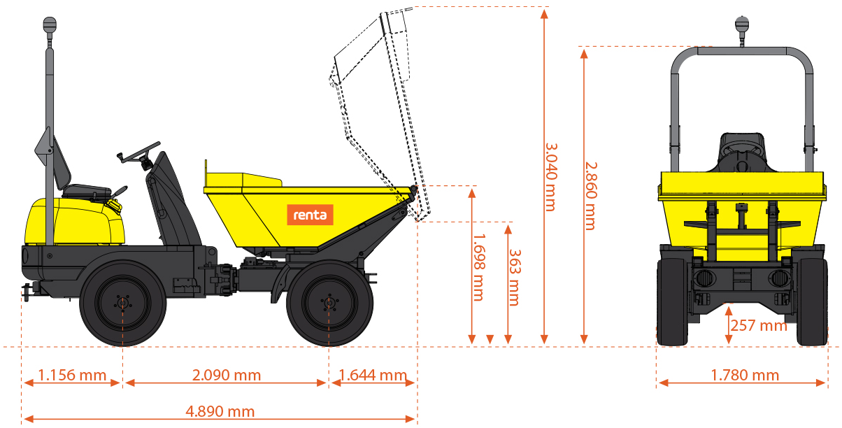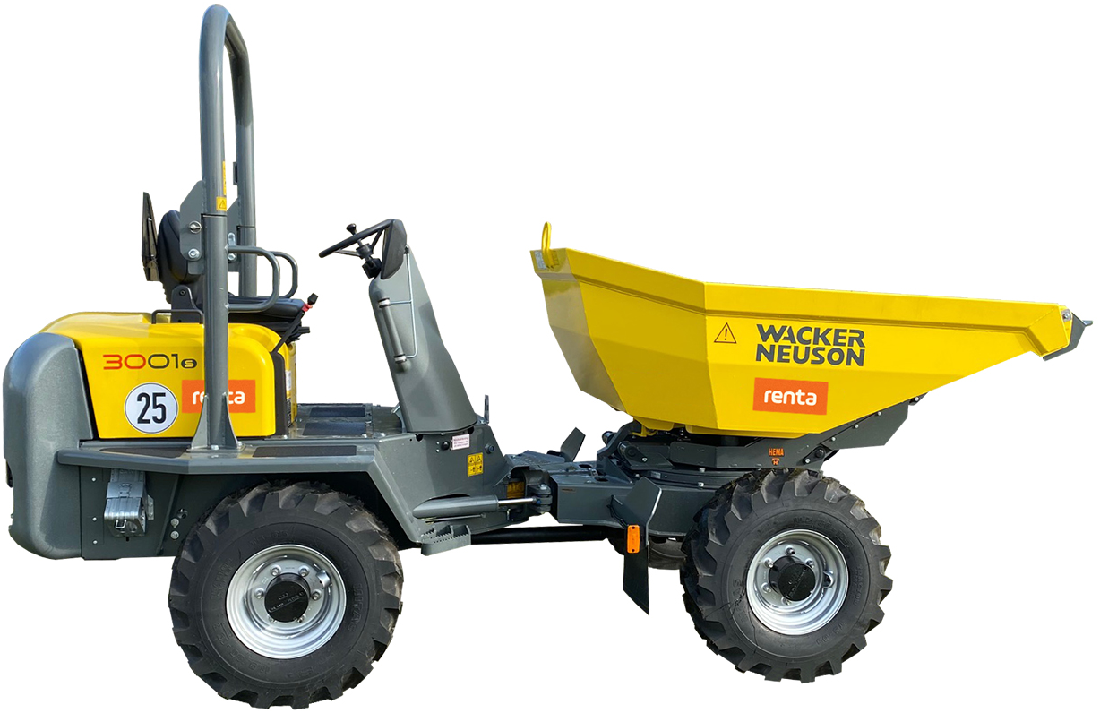 Lej Wacker Neuson 3001 hos Renta og få en alsidig og driftssikker dumper, der løser transportopgaverne effektivt – hver gang. Kontakt din nærmeste Renta-afdeling for booking og mere information.