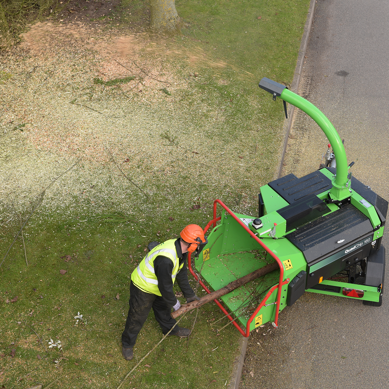 QuadChip-serien er designet til intensivt professionelt brug, og modellen 160 er særligt populær ved vejvedligeholdelse, parkdrift og større anlægsopgaver, hvor både kapacitet og mobilitet er vigtige.