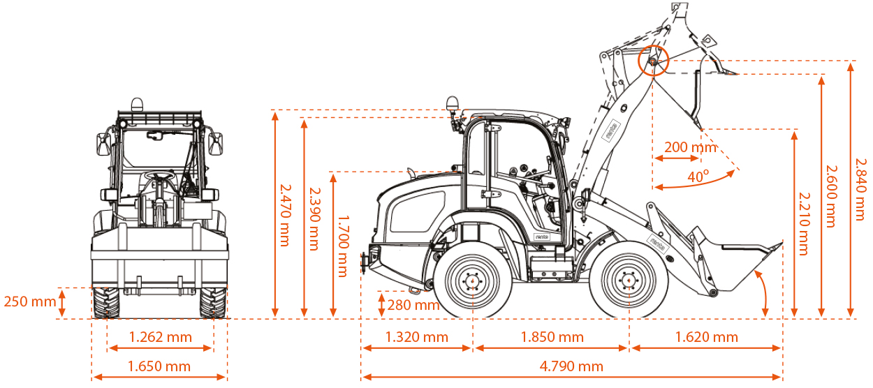 Førerkomforten er i fokus med en lukket kabine, udstyret med radio og varmeapparat, så du kan arbejde i al slags vejr – med både komfort og overblik. Det gør maskinen ideel til helårsbrug, uanset om du arbejder i sol, regn eller frost.