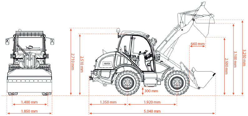 Den store fordel ved Kramer 850 er den ægte 4-hjulsstyring, som kombineret med en venderadius på kun 2.550 mm, giver en ekstremt adræt maskine, der kan arbejde effektivt selv på trange byggepladser og i snævre omgivelser.
