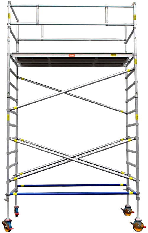 Det lette aluminiumsdesign gør stilladset enkelt at håndtere, samtidig med at det står stabilt – også når du arbejder i fuld højde. De kraftige hjul med bremser sikrer, at stilladset står fast, og gør det samtidig let at rykke videre til næste opgave, uden at du skal bruge unødig tid på at pakke ned.