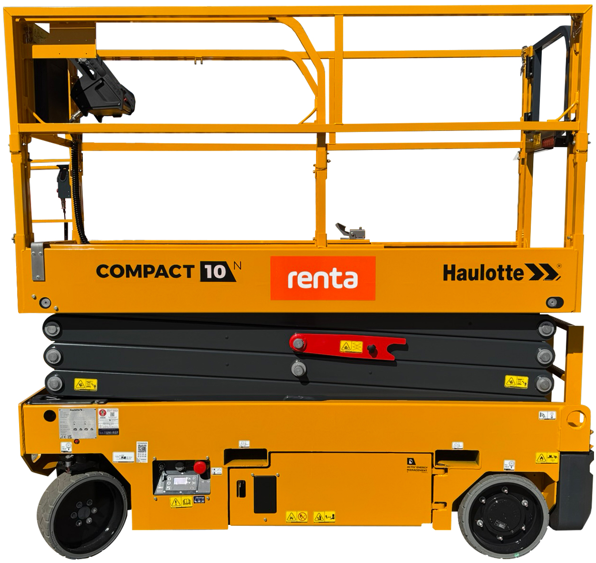Lej Haulotte Compact 10N hos Renta og få en kompakt og effektiv saxlift til arbejde i højden, hvor pladsen er knap. Find din nærmeste afdeling her!