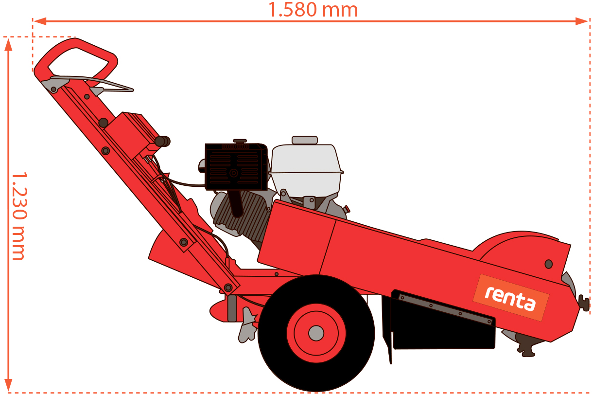 Maskinen er udstyret med 8 kraftige fræsetænder, der sikrer hurtig og jævn bortfræsning. Den kan også bruges til at fjerne bambus, hække og buskstubbe, hvor almindeligt værktøj kommer til kort.