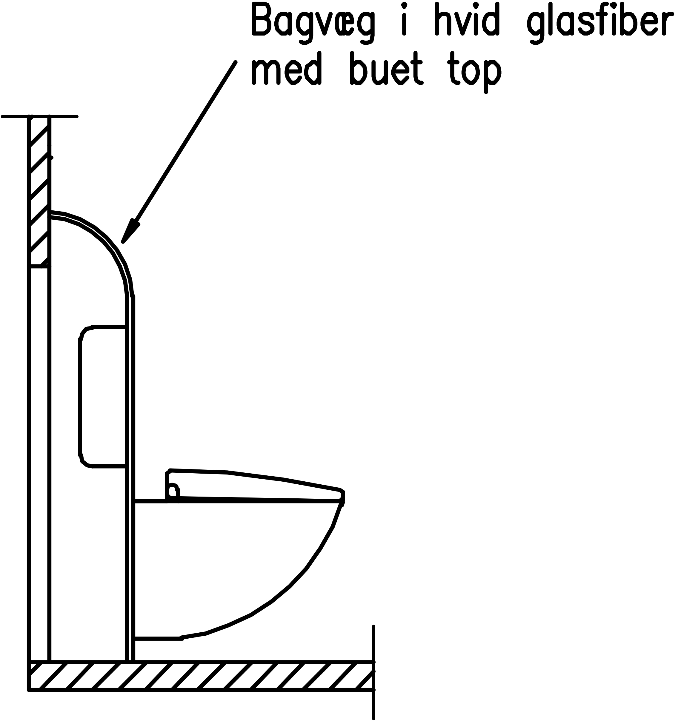 Bagvæggen i hver toiletsektion er udformet med en buet top, hvilket forhindrer placering af drikkevarer, cigaretter eller andre genstande – en gennemtænkt detalje, der gør vognen både mere hygiejnisk og lettere at holde ren under brug.