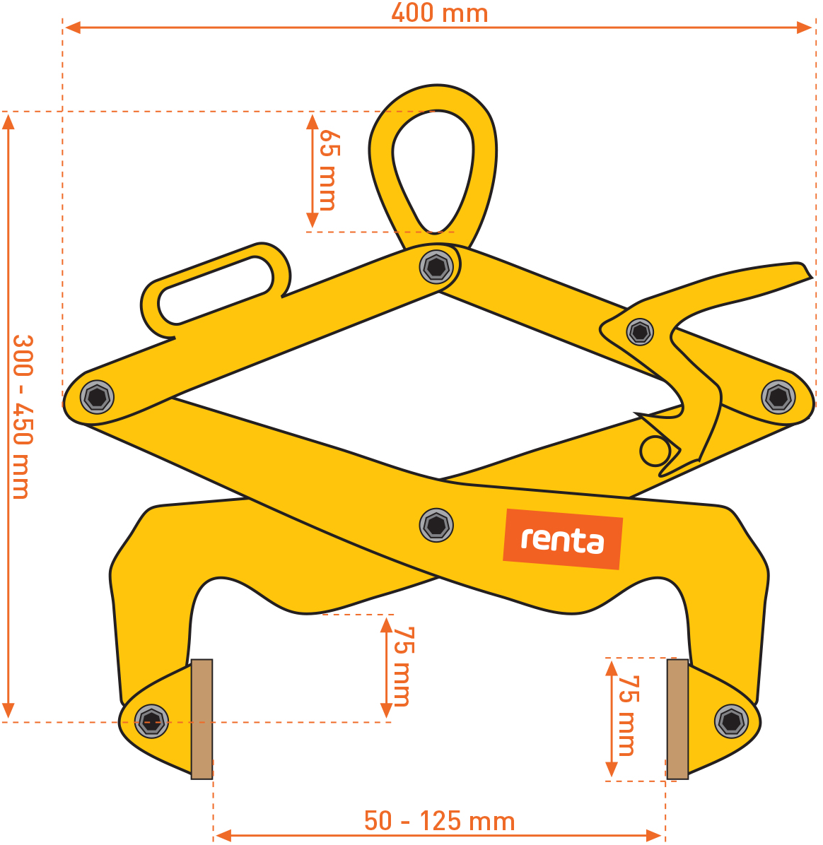 Med en løftekapacitet på op til 600 kg og en gribebredde fra 50 til 600 mm, kan du nemt tilpasse grebet til alt fra brede kantblokke og store belægningssten til betonemner og støttemure. Den lange gribelængde på 350 mm og indvendige højde på 190 mm giver ekstra fleksibilitet – og gør den velegnet til ujævne eller asymmetriske materialer.